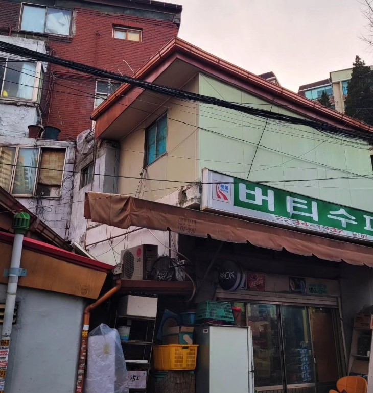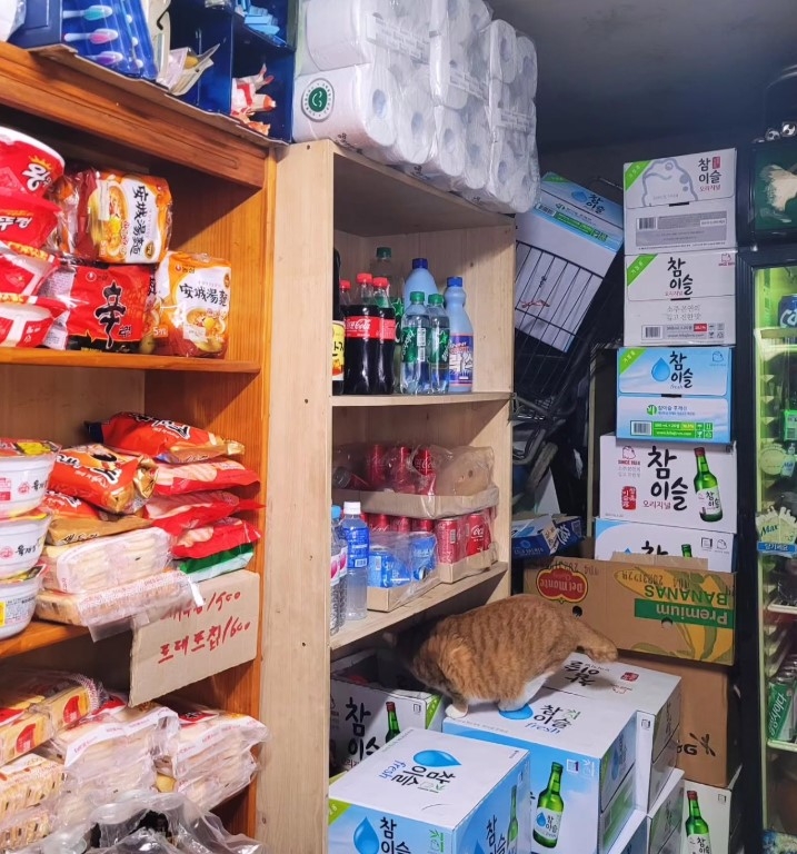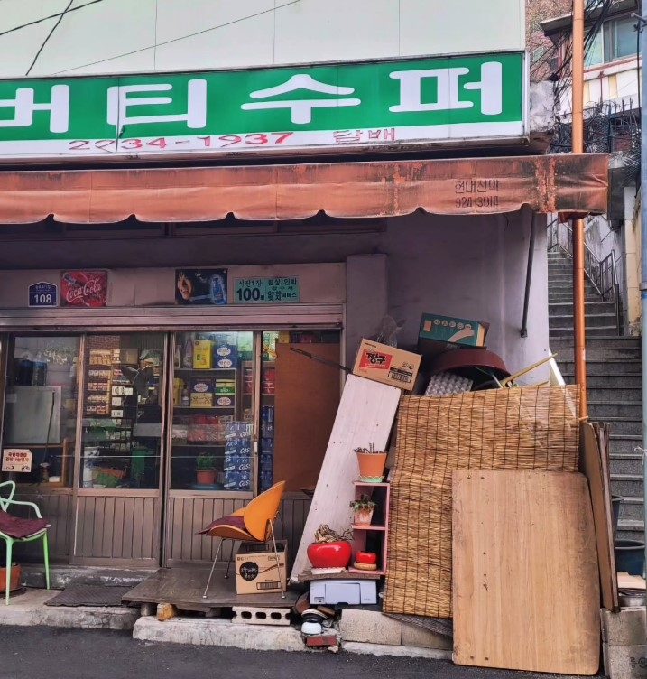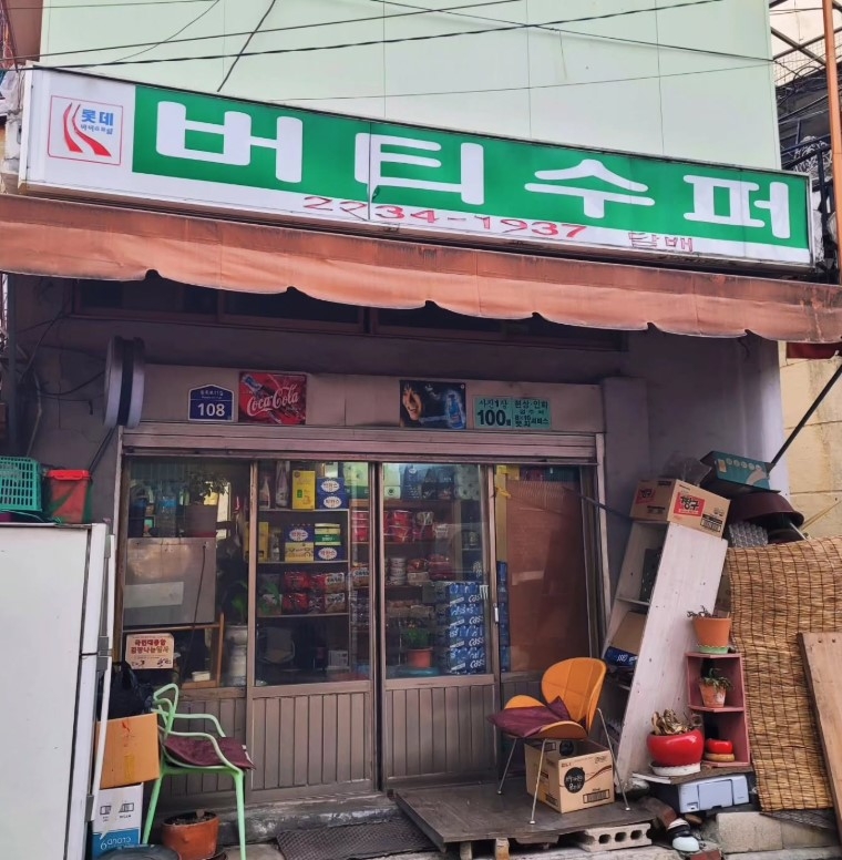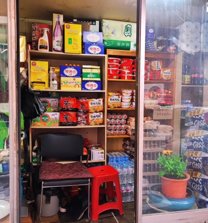 여기는 슈퍼가 잘 되는 곳은 아니에요. 제가 집이 있는데도 들어갔다가 나왔다가 힘들기 때문에 그냥 여기서 살아요. 슈퍼를 줄이고 방을 크게 만들었거든요. 여기 있으면 심심하지 않아서 좋잖아요.